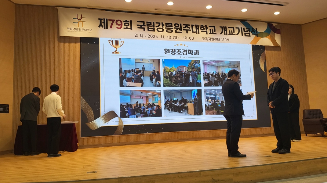 이번 인증은 제79회 국립강릉원주대학교 개교기념식(20251111)에서 박덕영 총장님으로부터 함광민 학과장님이 대표로 수여받았습니다.