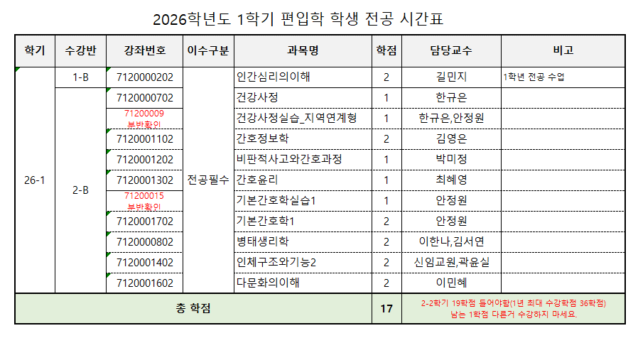2026-1 간호학과 전공 교과목 개설 시간표(20250121) - 학생공지용.xlsx